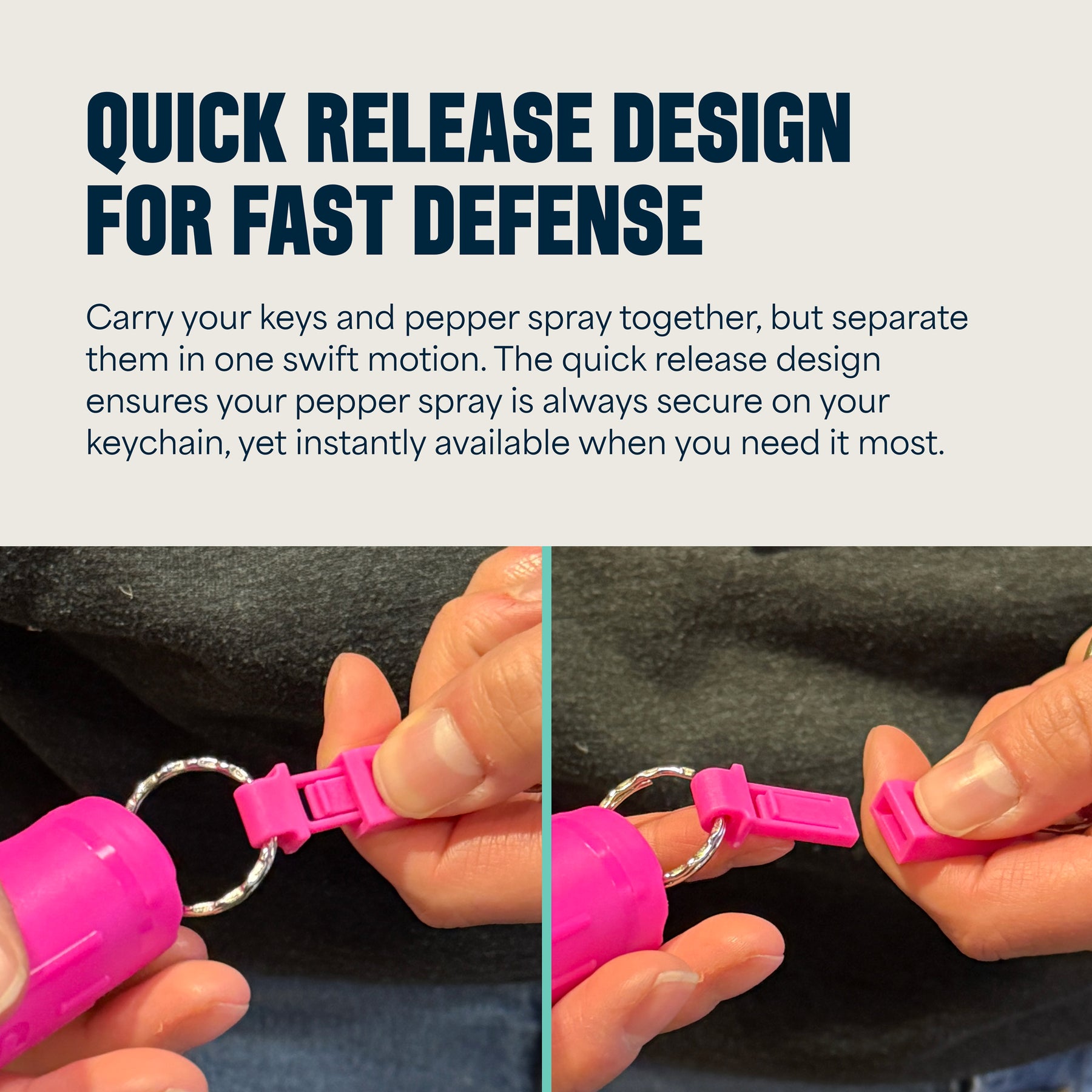 • READY WHEN NEEDED: The integrated quick release keychain lets you instantly detach the pepper spray from your keys, purse, or backpack for immediate use